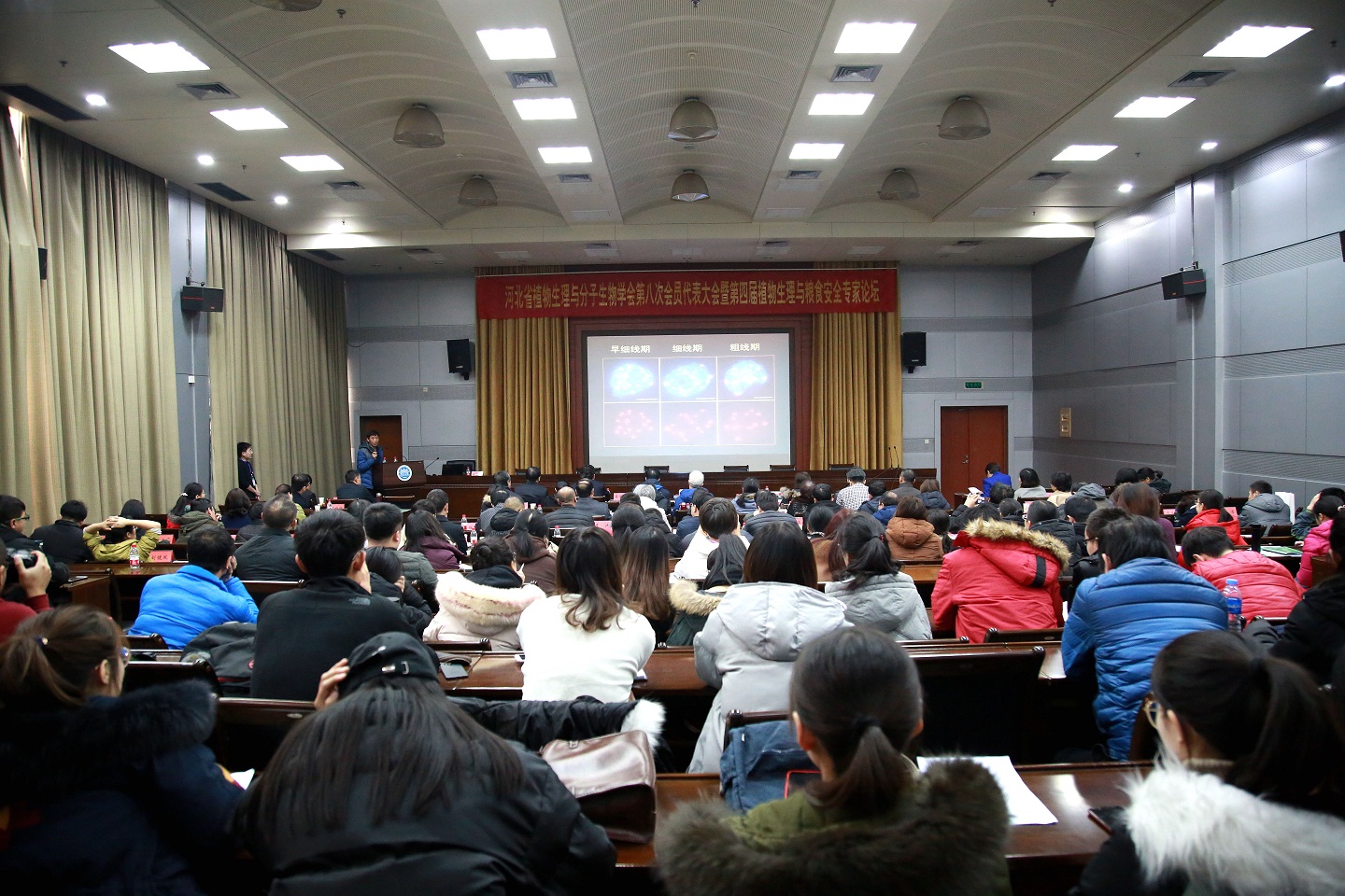 由河北省植物生理与分子生物学会主办,我校生命学院协办的“河北省植物生理与分子生物学会第八次会员代表大会暨第四届植物生理与粮食安全专家论坛”12月21日-22日在我校召开。马峙英副校长致欢迎辞,中国植物生理与植物分子生物学会秘书长唐威华研究员、河北省科学副主席郑丽萍、郭毅出席大会开幕式并致辞。来自中国科学院遗传发育研究所、中国农业大学、中国科学院上海植物生理与生态研究所、河北省科学院、河北省农林科学院、河北大学、河北师范大学、河北科技大学、河北农业大学等20多个单位的85名专家及会员代表参加了本次会议。