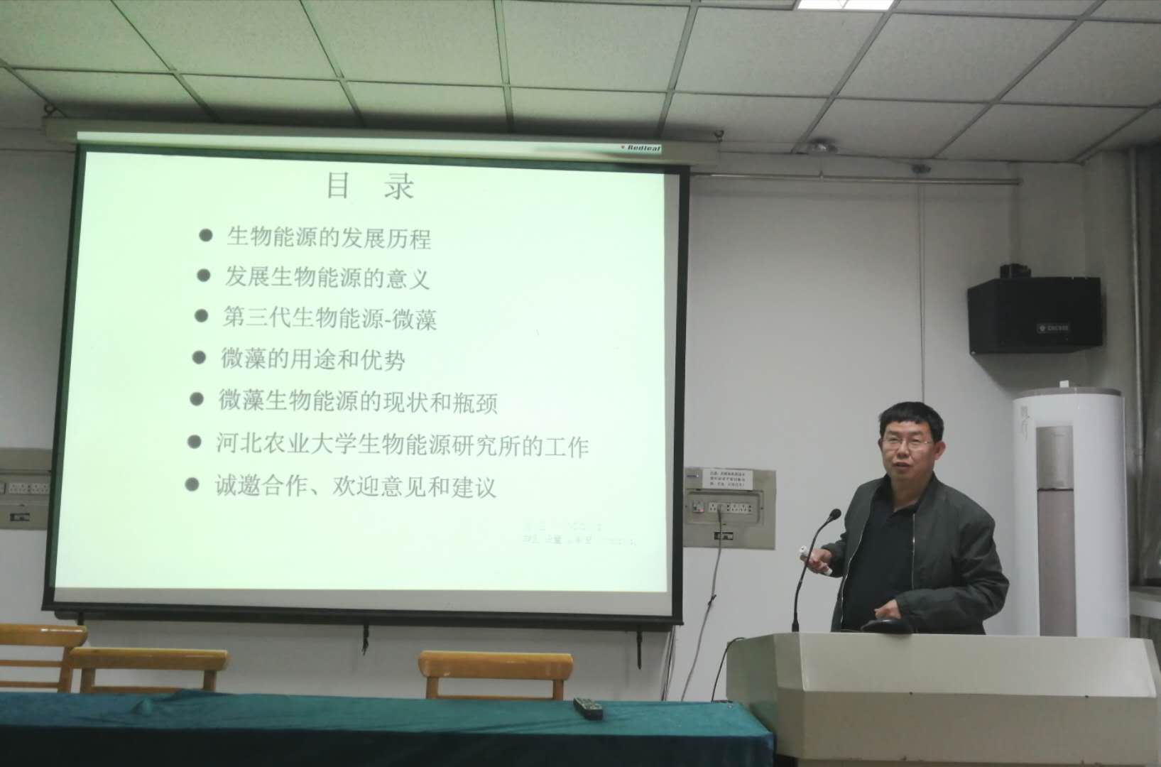 4月11日下午,刘国振教授为beat365中文官方网站师生作题目为“生物能源——从理论到实践”学术报告。刘国振教授从生物能源的发展历程讲起,为大家分析了我国能源预警的发出和节能低碳的迫切形势,开发可利用的生物能源迫在眉睫,有重要的战略意义。刘国振教授在报告中介绍了第三代生物能源——微藻的用途和优势,开发使用现状和技术瓶颈,河北农业大学生物能源研究所自2008年以来开展的研究工作及取得的成绩。报告结束后,学院师生和刘老师进行了交流。刘老师的报告既有科学研究的前瞻性,又有广泛的科普性,受到与会师生的欢迎和好评。