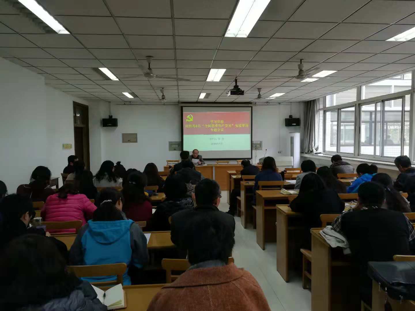 11月8日下午,beat365中文官方网站在学术报告厅组织全体教师及部分学生党员开展黄群等4名“全国优秀共产党员”先进事迹专题学习。副院长冯永军主持学习,党委书记张虎首先传达了学校党委的相关指示精神,对黄群等4名“全国优秀共产党员”先进事迹内容进行领学,详细介绍了黄群、宋月才、姜开斌、王继才四位同志的主要事迹。